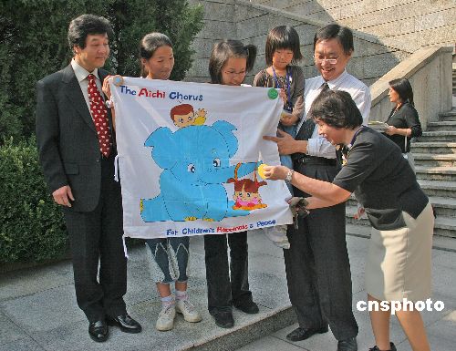 10月6日,日本名古屋市“为了孩子们的幸福与和平爱知合唱团”180余人来到南京,开展和南京人民的音乐交流活动。10月7日,他们来到侵华日军南京大屠杀遇难同胞纪念馆参观,并向遇难者敬献花圈。中新社发 祁恩芝 摄