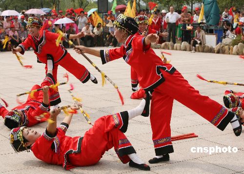 第十届中华不老城暨海峡两岸中老年文化艺术节近日在福建武夷山举行,来自港、澳、台及大陆各地的百余支代表队五千多人参加活动。图为开幕式上的老年秧歌表演。中新社发 邱汝泉 摄