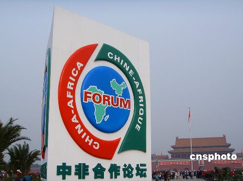 10月27日,由三枚“中非论坛”会标组成的三角形标志在天安门广场正式亮相,迎接11月1日至6日“中非合作论坛”北京峰会的召开。中新社发 玉龙 摄