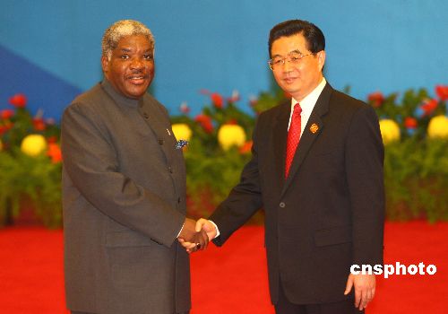 中非峰会:胡锦涛迎接赞比亚总统姆瓦纳瓦萨