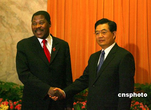 十一月六日,中国国家主席胡锦涛在北京人民大会堂会见贝宁总统亚伊。中新社发 廖文静 摄