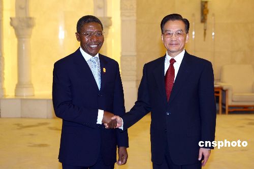 十一月六日,中国国务院总理温家宝在北京人民大会堂会见莱索托首相莫西西利。中新社发 盛佳鹏 摄