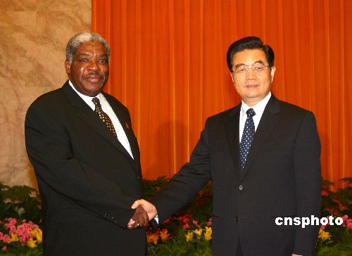 十一月七日,中国国家主席胡锦涛在北京人民大会堂会见赞比亚总统姆瓦纳瓦萨。中新社发 廖文静 摄