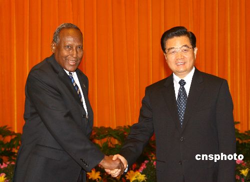 十一月七日,中国国家主席胡锦涛在北京人民大会堂会见索马里过渡联邦政府总统优素福。中新社发 廖文静 摄