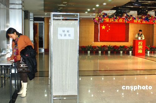 十一月八日,北京黄瓜园选区的选民在秘密些票处写票选举北京市西城区第十四届人民代表大会代表。当日,北京全市八百多万选民陆续投票,选出新一届区县和乡镇人大代表。中新社发 廖攀 摄