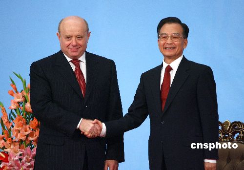 十一月九日晚,“俄罗斯年闭幕式庆祝演出”在北京人民大会堂举行。中国国务院总理温家宝和俄罗斯总理弗拉德科夫出席闭幕式并致辞。中新社发 廖文静 摄