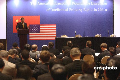十一月十四日,美国商务部部长卡洛斯·古铁雷斯在北京举行的中国北京知识产权保护圆桌会议上,就“中国不断增长的互联网经济及对保护的挑战”发表讲话。中新社发 盛佳鹏 摄