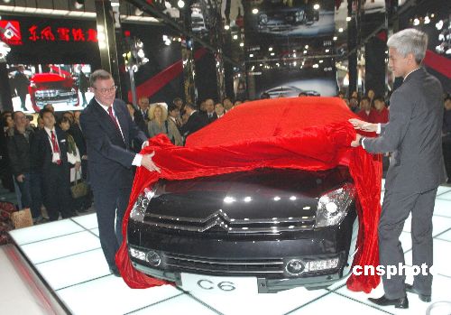11月18日,第九届北京国际汽车展览会在国际展览中心开幕,雪铁龙C6新车首次亮相中国,集团高层在展会上为C6新车揭幕。中新社发 赵振清 摄
