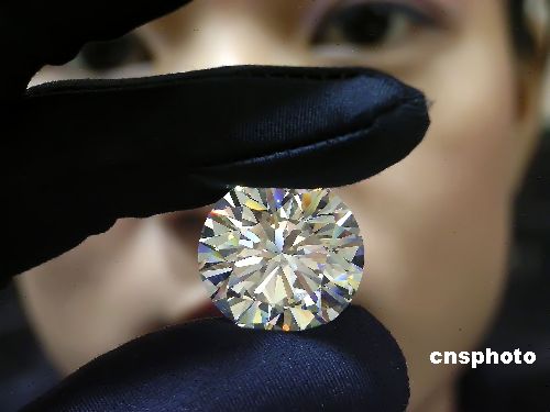 | 2006年11月27日,价值4120万元人民币重达26.62克拉的中国最大的钻石“北极光”现身广西南宁梦之岛百货。“北极光”发现于1921年,出产于北极的Ekati钻石矿区,钻坯重达162克拉,在世界钻石切割中心比利时,经过数十名高级技师2个多月的精心劳作,才切割完成这颗艳光逼人的26.62克拉的大钻。据说,每次锯切,钻坯都会发出七彩光芒似北极光,因而钻石得名“北极光”。此次,“北极光”钻石是参加“潮宏基2006美钻之旅”全国巡展到达广西南宁的。中新社发 骆文刚 摄