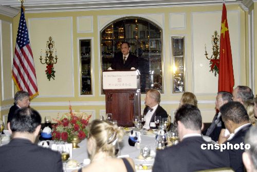 当地时间十二月五日晚,中国驻美大使周文重应邀出席美中政策基金会举办的年会晚宴,并在晚宴上发表重要演讲。周文重表示,只要本着友好磋商处理分歧,中美关系2007年将继续稳定发展。中新社发 邱江波 摄