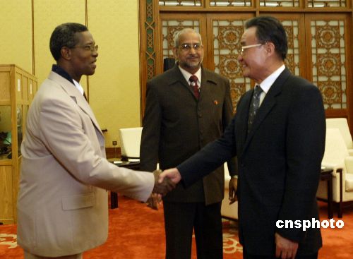 十二月六日,吴邦国委员长在北京会见格林纳达议会参议长拉尔辛和众议长约瑟夫一行。中新社发 任海霞 摄