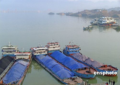12月12日,据长江海事局消息,2006年9月中旬以来,随着三峡船闸完建施工和三峡水库156米水位蓄水,库区航路和锚泊区发生了很大变化,尤其是三峡船闸实施单线运行后,造成在三峡大坝和葛洲坝水域待航、待闸的船舶每日达500艘左右。为此,长江海事局目前已在三峡库区划定了150个船舶临时停泊区,以保证船舶有序停泊和航行安全。中新社发 刘君凤 摄
