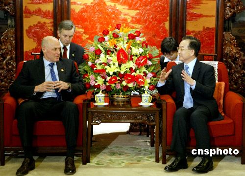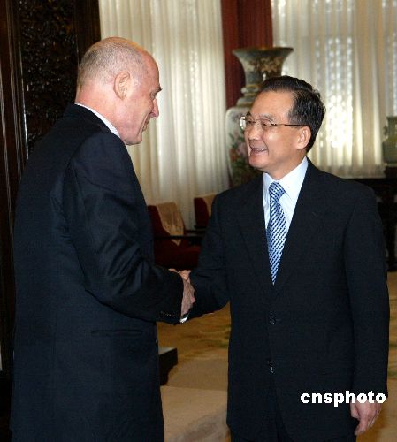 十二月十五日,中国国务院总理温家宝在北京会见美国总统特别代表、财政部长保尔森一行。中新社发 任海霞 摄