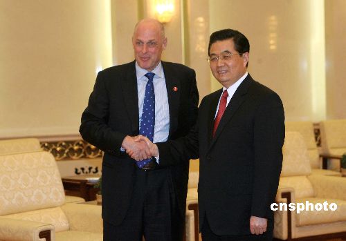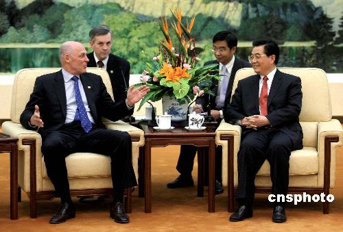 十二月十五日,北京人民大会堂,中国国家主席胡锦涛会见美国总统特别代表、财政部长保尔森一行。中新社发 盛佳鹏 摄