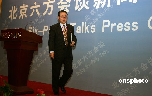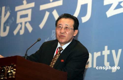 第五轮六方会谈第二阶段会议12月22日在北京宣布休会后,朝鲜代表团团长金桂冠傍晚时分在钓鱼台大酒店举行新闻发布会。中新社发 任晨鸣 摄