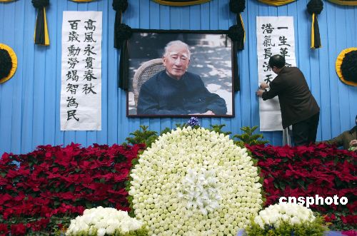 一月十六日夜,薄一波灵堂在加紧布置中。薄一波的灵堂设置在位于北京府佑街的解放军三零五医院。
