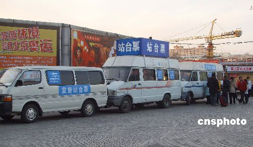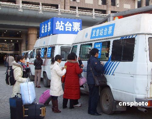 1月26日,为迎接春运高峰的到来,北京西客站北广场增加了三部临时站台票售票车,给广大乘客提供了方便。中新社发 玉龙 摄