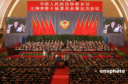 一月二十七日,上海市政协十届第五次会议在上海展览中心中央大厅隆重开幕。中新社发 汤彦俊 摄
