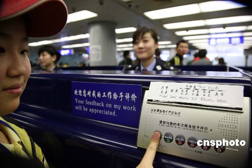 北京边检总站近日在首都机场现场试行启用“旅客满意度电子评价系统”。这是在全国边检系统首次试行的一项新举措。中新社发 段毅 摄