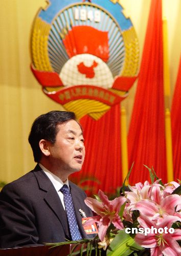 一月二十九日下午,河南省政协主席王全书作《加强诚信建设 构建和谐中原》的讲话。当日,为期六天的河南省政协第九届五次会议在郑州闭幕。中新社发 李志全 摄