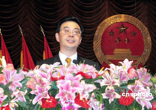 二月三日上午,湖南省十届人大五次会议第三次大会庄严举行,周强以高票当选为湖南省人民政府省长。周强为中共第十六届中央委员,第九届全国人大常委(内蒙古),一九六零年四月生,湖北黄梅人,研究生学历。中新社发 刘双双 摄
