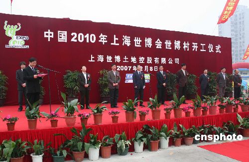 二月八日,中国二0一0年上海世博会“世博村”工程在上海正式开工。据介绍,“世博村”是为参展上海世博会的各个国家和国际组织的工作人员提供的生活、办公区域,也具有后勤保障功能。整个“世博村”项目由生活楼、服务公寓以及相配套的生活服务区组成。中新社发 世博局 摄