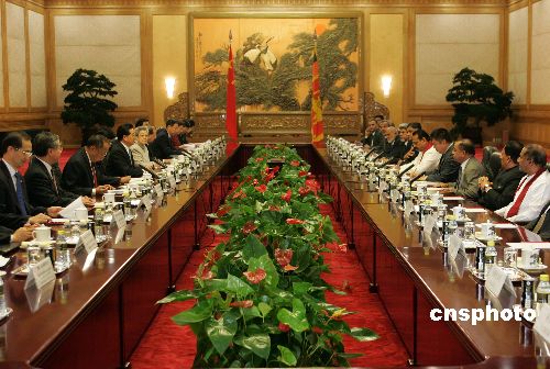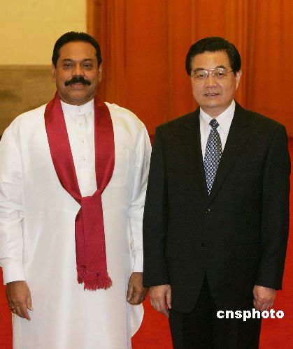 中国国家主席胡锦涛二月二十七日在北京人民大会堂与来访的斯里兰卡总统拉贾帕克萨举行会谈。 中新社发 毛建军 摄