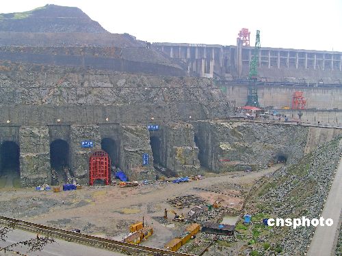 2007年2月28日,顺利建设中的三峡地下电站洞口连洞口。据悉,三峡地下电站隐藏于三峡大坝右岸“白石尖”山体内,将安装6台70万千瓦的水轮发电机组,相当于1.5个葛洲坝水电站;三峡地下电站首批机组将于2010年并网发电。中新社发 刘君凤 摄