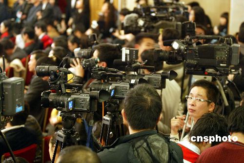 三月二日,全国政协十届五次会议在北京人民大会堂举行首场新闻发布会,新闻发言人吴建民回答中外记者提问,海内外众多媒体到场采访。中新社发 任海霞 摄