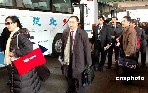 3月2日分,进京出席十届全国人大五次会议的山东代表乘坐济南——北京的T36次列车到达北京。中新社发 王辉 摄