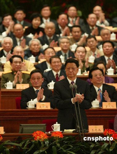 三月三日下午,全国政协十届五次会议在北京人民大会堂开幕,全国政协副主席王忠禹主持会议。中新社发 杜洋 摄