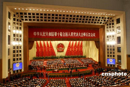 三月五日上午,十届全国人大五次会议在北京人民大会堂隆重开幕。中新社发 刘新 摄