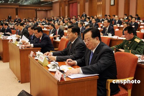 十届全国人大五次会议第二次主席团会三月十二日在北京人民大会堂举行,曾庆红等代表们按表决器通过各项议案。中新社发 毛建军 摄