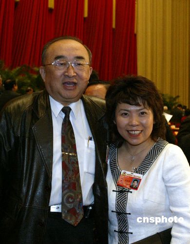 三月十二日,全国政协十届五次会议在北京人民大会堂举行第四次全体会议大会发言,政协委员邓亚萍发言后与政协常委伍绍祖合影留念。中新社发 任海霞 摄