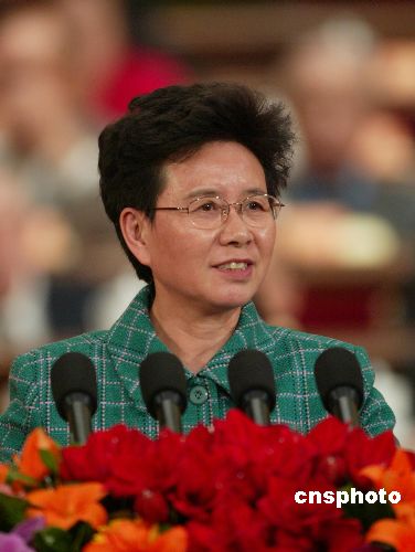 三月十二日,全国政协十届五次会议在北京人民大会堂举行第四次全体会议。潘贵玉委员代表民进中央发言时说,文化安全是国家稳定发展、实现民族复兴的前提。图为潘贵玉委员作《维护国家文化安全 促进中华文化崛起》的发言。中新社发 杜洋 摄