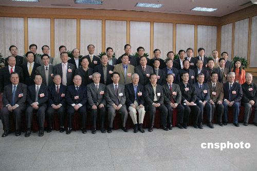 三月十四日上午,全国政协十届五次会议举行最后一次分组讨论后,汇聚诸多“明星大腕”的经济界三十二组的委员们纷纷呼朋引伴、合影留念“惜别”。中新社发 魏晞 摄