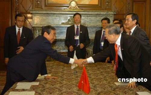 三月二十三日,日本众议院议长河野洋平在东京会见了中国全国人大常委会副委员长路甬祥。路甬祥一行此次访日将正式启动中国全国人大与日本国会参议院的交流机制。中新社发 王健 摄