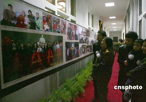 三月二十四日,邵华和孙子毛冬冬在灵堂外观看毛岸青生前的照片。二零零七年三月二十三日凌晨四时二十分,毛泽东次子毛岸青因病在北京不幸逝世,享年八十四岁。中新社发 盛佳鹏 摄