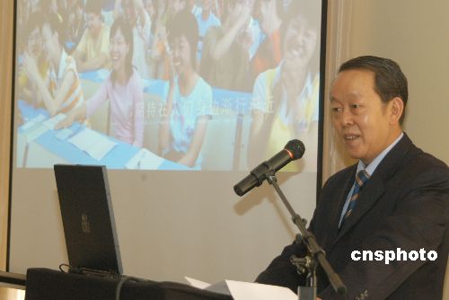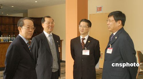 三月二十六日,由上海市副市长杨雄率领的代表团与联合国有关官员会面,介绍二〇一〇年上海世博会的筹备情况。中国常驻联合国代表团王光亚大使特别在联合国总部为上海代表团主持了一个推介会,这是上海世博会本年度的第一个国际招展活动。中新社发 刘小青 摄