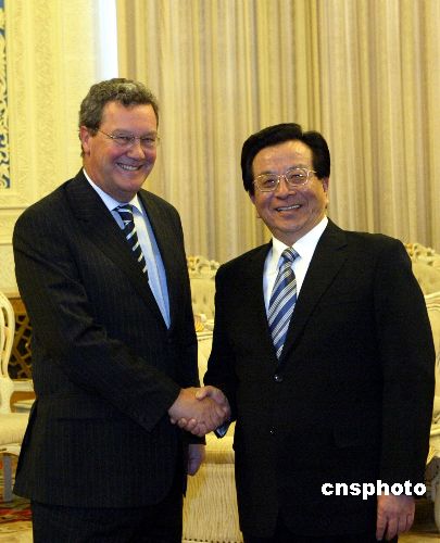 四月三日,国家副主席曾庆红在北京人民大会堂会见来华访问的澳大利亚外交部长亚历山大·唐纳。中新社发 任海霞 摄
