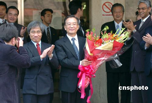 中国总理温家宝十三日下午在京都市参观了立命馆大学,受到该校师生的热烈欢迎。中新社发 王健 摄