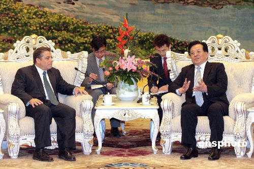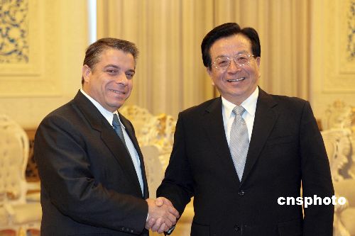 四月十六日,北京人民大会堂,中国国家副主席曾庆红会见古巴共和国外交部长佩雷斯。中新社发 盛佳鹏 摄
