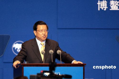 四月二十一日,博鳌亚洲论坛二零零七年年会在海南博鳌开幕,博鳌亚洲论坛秘书长龙永图主持开幕式。中新社发 盛佳鹏 摄