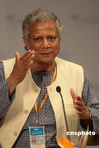 四月二十一日,博鳌亚洲论坛二零零七年年会在博鳌进行的第一天,孟加拉乡村银行创始人、执行总裁、二零零六年诺贝尔和平奖获得者穆罕默德·尤努斯在博鳌接受记者采访时,呼吁建立社会企业。中新社发 盛佳鹏 摄