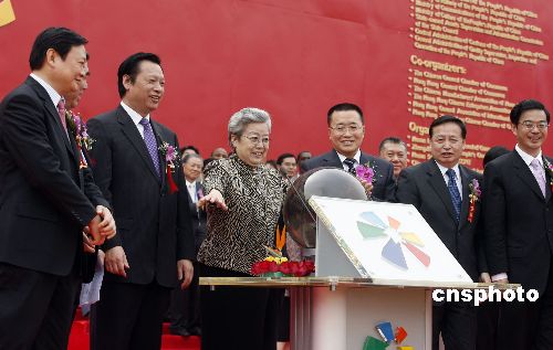 四月二十六日,国务院副总理吴仪同中部六省省长共同庆贺第二届中博会开幕。当日,第二届中国中部投资贸易博览会在河南郑州开幕。中新社发 慎重 摄
