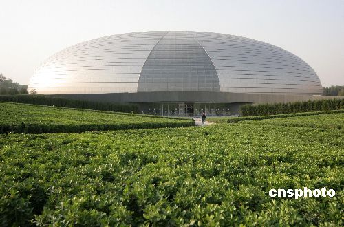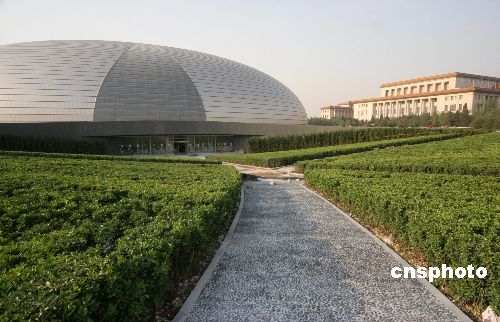 5月14日,由法国著名设计师安德鲁设计的国家大剧院即将全面建成亮相北京长安街,环绕大剧院的水上文化休闲广场将于本月底对外开放。国家大剧院工程主体建筑呈“巨蛋”形,由歌剧院、音乐厅、戏剧场和公共大厅等部分组成,建成后,将成为中国最高水平的表演艺术中心。中新社发 吴芒子 摄