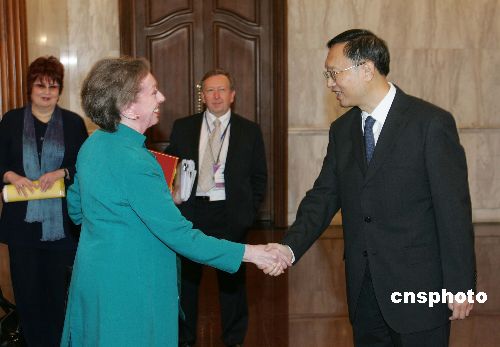 五月十八日,中国外交部长杨洁篪在北京钓鱼台国宾馆与来访的英国外交大臣贝克特举行会谈。中新社发 毛建军 摄