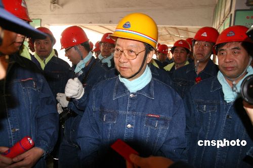 6月12日,国家安监总局局长李毅中,在河北邢台西郝庄铁矿检查安全生产情况。此前,李毅中强调,目前中国的小煤矿、小非煤矿的行政管理成本太高,相对于这些小矿对经济发展的贡献来比较,弊远远大与利,国家把原定于2008年上半年完成关闭1万处小煤矿的目标提前到2007年底完成,而且要争取再多关闭一些。中新社发 岳立中 摄