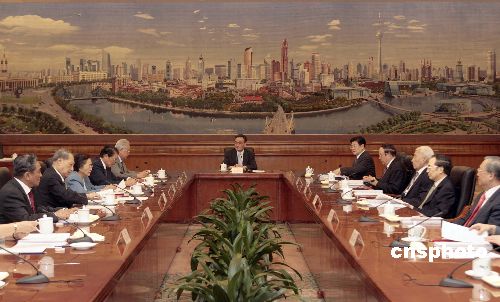 | 六月十八日,十届全国人大常委会第六十一次委员长会议在北京人民大会堂举行,全国人大常委会委员长吴邦国主持会议。会议决定十届全国人大常委会第二十八次会议于六月二十四日至二十九日举行,根据委员长会议建议的议程,此次常委会会议将继续审议劳动合同法草案、反垄断法草案、突发事件应对法草案、就业促进法草案,首次审议民事诉讼法修正草案、节约能源法修订草案、律师法修订草案。中新社发 盛佳鹏 摄