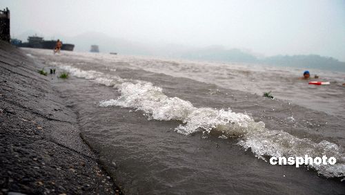 6月20日,长江葛洲坝下泄流量达39900m3/s,根据水情情况,依照《长江海事局水上交通安全预警制度》、《<长江海事局水上交通安全预警制度>宜昌局实施细则》等规定,宜昌海事局决定实施洪水四级(蓝色)预警。安全预警范围从长江上游鳊鱼溪(上游航道里程145.0公里)至长江上游野猫石上游航道里程63.7公里;长江中游镇江阁(上游航道里程4.5km)-长江中游岩板窝(中游航道里程499.3km)。中新社发 刘曙松 摄